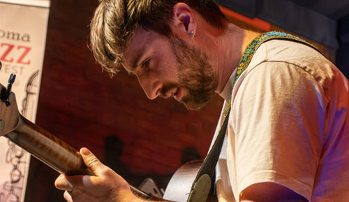 Aidan was a member of GYJO during 2013-2015, got highly involved in the Stroud Jazz Club sessions and the Gloucester Academy of Music Summer Jazz course and has kept in frequent contact over the years with Peter Martin at our county Jazz Centre. Aidan went on to study and graduate from the Royal Birmingham conservatoire BMus and MMus Jazz courses and during this time he built up a strong reputation as a Jazz Guitar soloist and was awarded the Phil Miller Solo Guitar Prize.